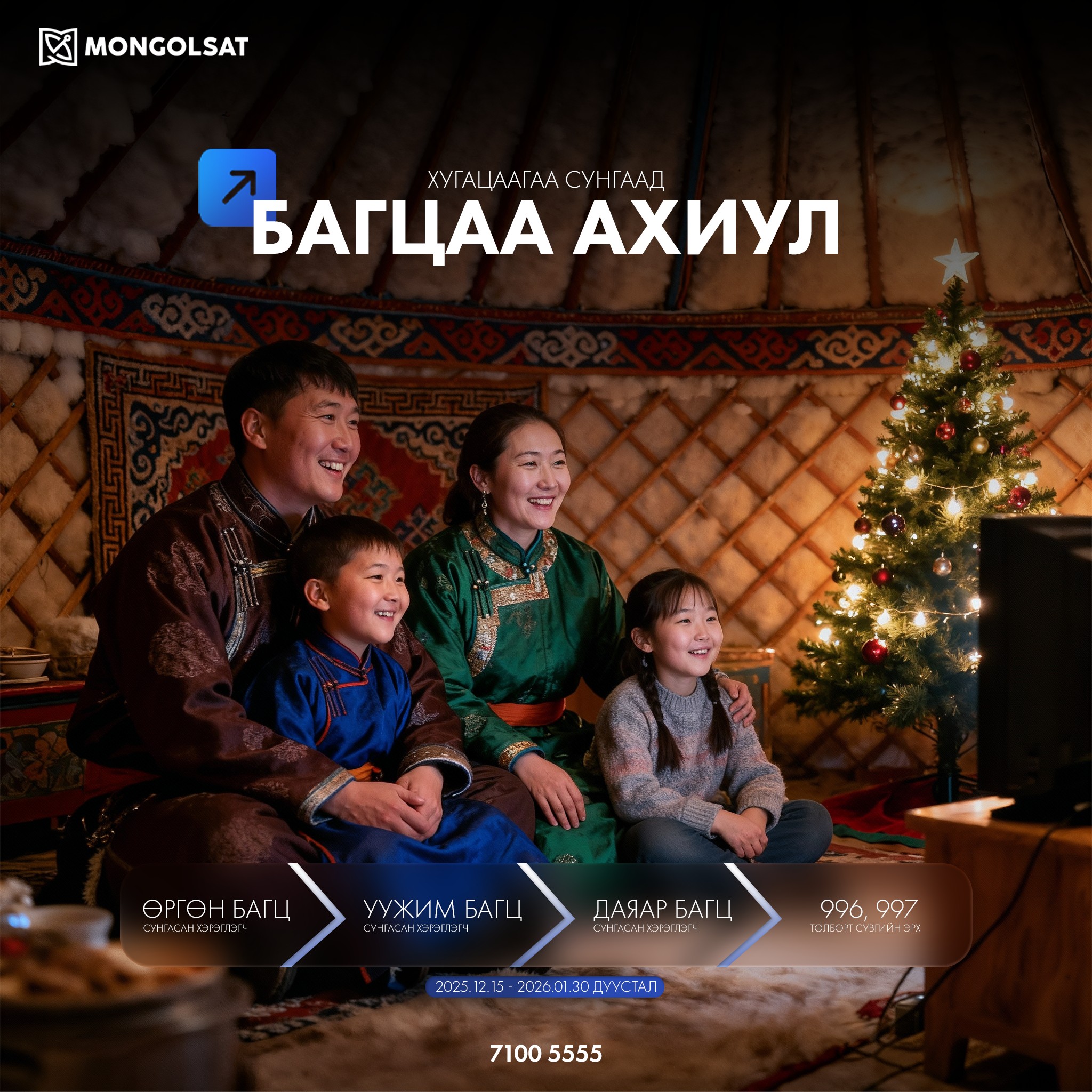 Шинэ жилийн super урамшуулал эхэллээ Хэрэглэгч та үндсэн багцаа сунгаад, хугацаа хамаарахгүйгээр багцаа ахиулаад аваарай. Өргөн багц сунгавал Уужим багцын эрхээр ахиулж олгоно Уужим багц сунгавал Даяар багцын эрхээр ахиулж олгоно Даяар багц сунгавал 996, 997-р төлбөрт сувгуудын эрх давхар олгоно.